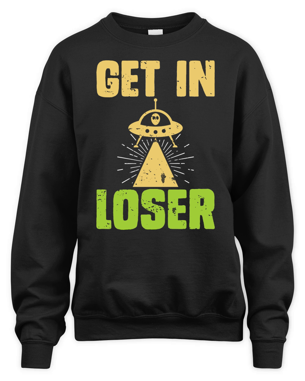 Shop Vintage UFO Alien get In loser Unisex Premium Crewneck Sweatshirt custom made just for you. Available on many styles, sizes, and colors.