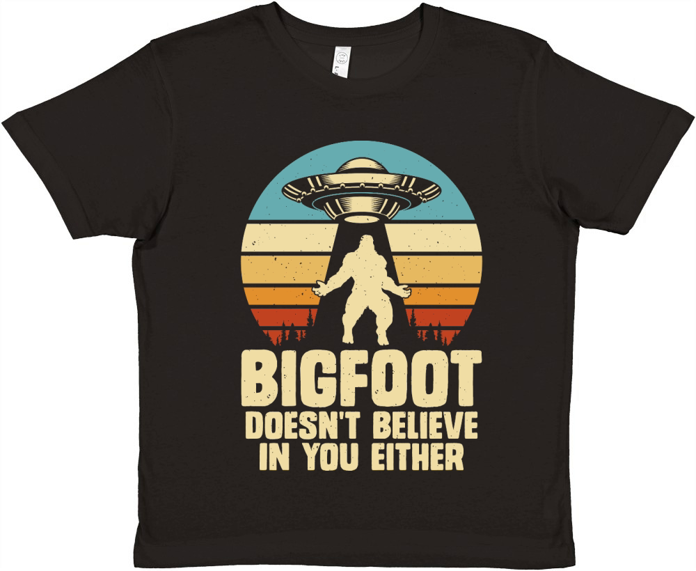 Shop Vintage UFO Alien Bigfoot doesnt believe in you either Premium Kids Crewneck T-shirt custom made just for you. Available on many styles, sizes, and colors.