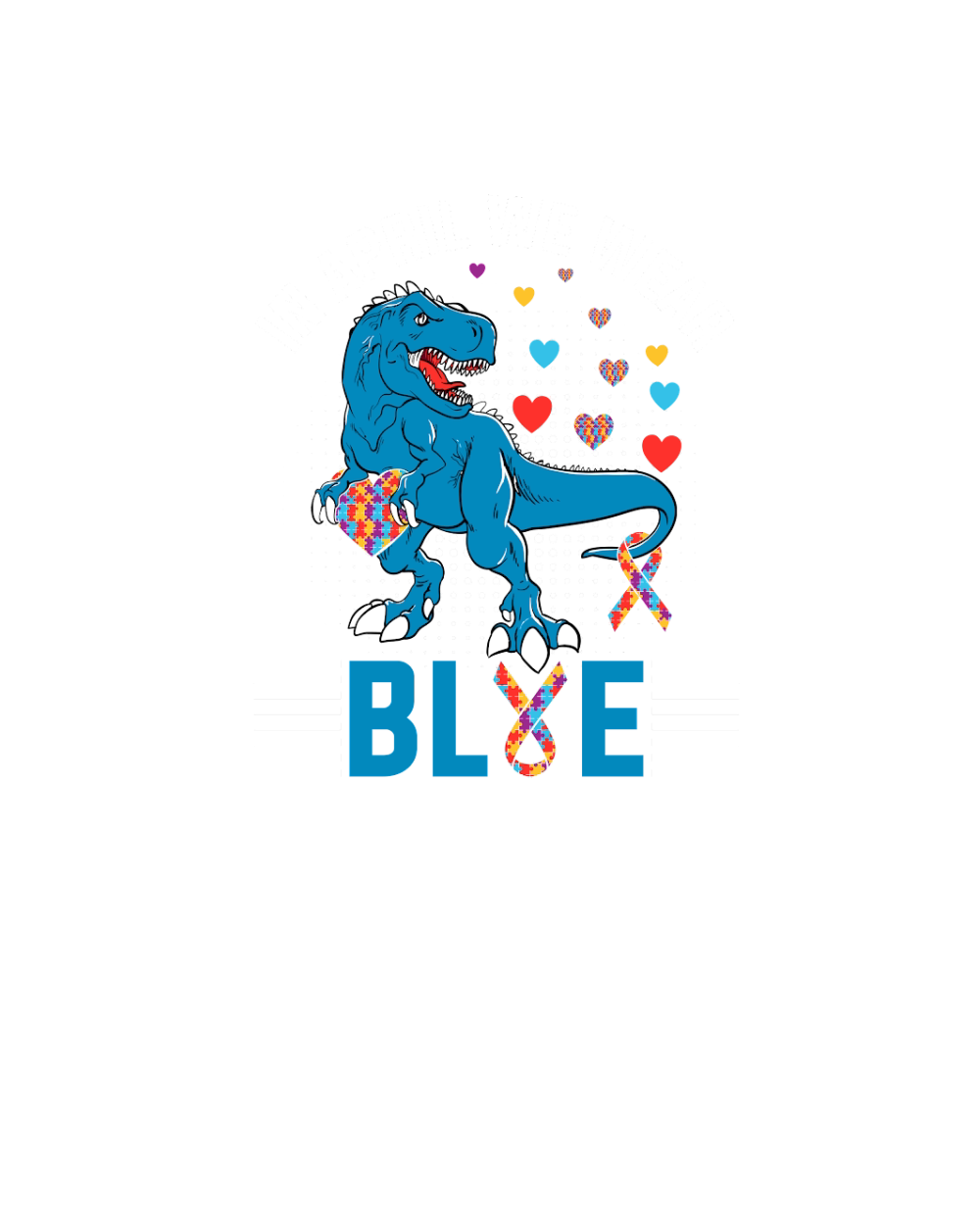 In April We Wear Blue T Rex Dinosaur