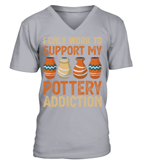 Shop I Only Work To Support My Pottery Addiction V-Neck T-shirt custom made just for you. Available on many styles, sizes, and colors.