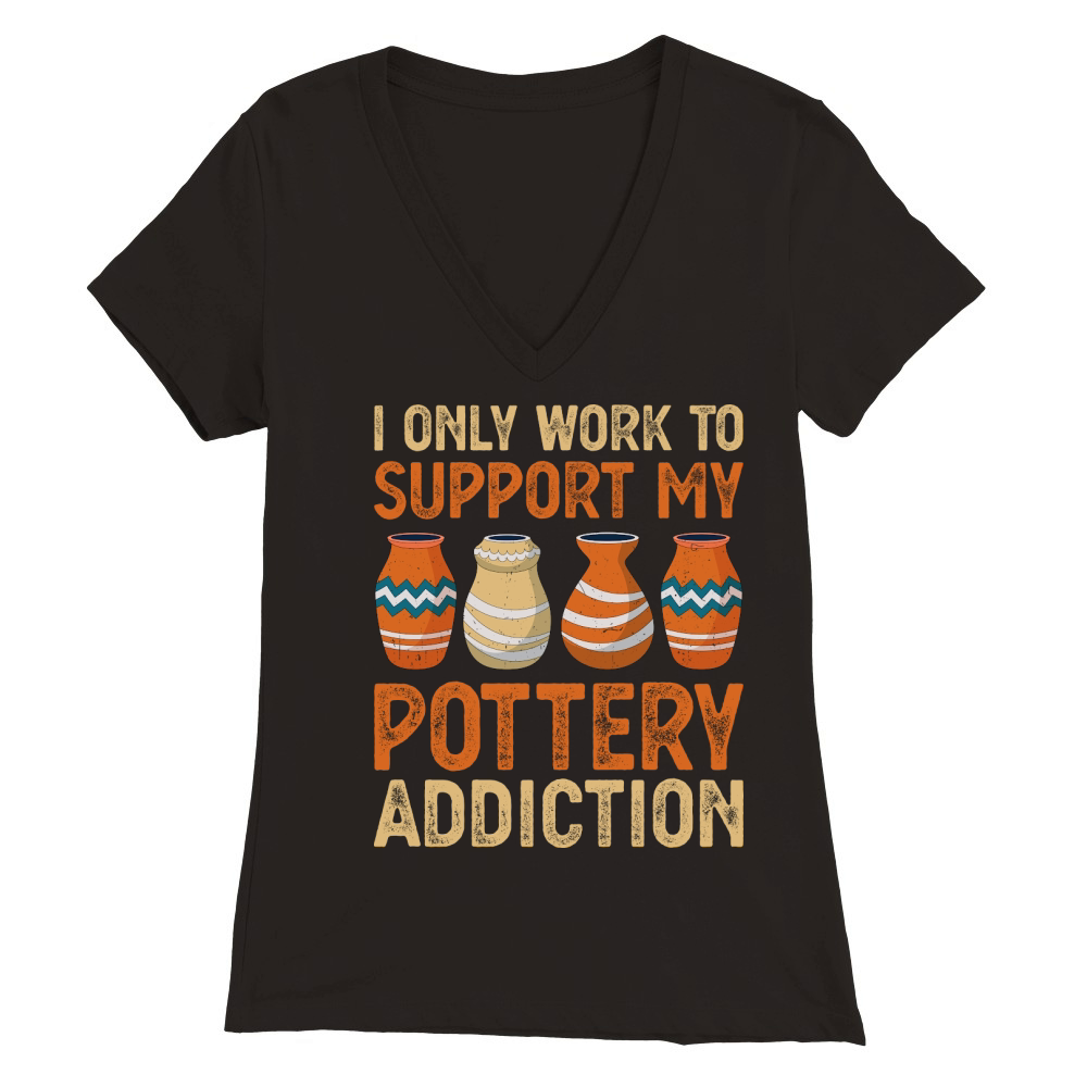 Shop I Only Work To Support My Pottery Addiction Premium Womens V-Neck T-shirt custom made just for you. Available on many styles, sizes, and colors.