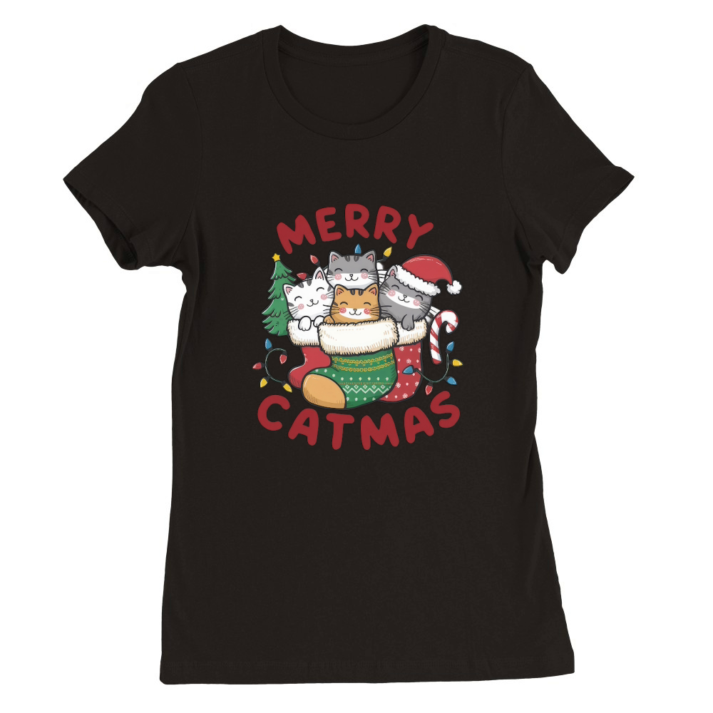 Shop Retro Christmas Cat Vintage5 Premium Womens Crewneck T-shirt custom made just for you. Available on many styles, sizes, and colors.