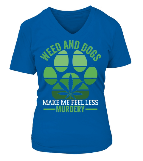 Shop Weed and dogs make me feel less murdery V-neck T-Shirt Woman custom made just for you. Available on many styles, sizes, and colors.