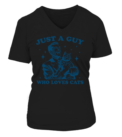 Shop Just A Guy Who Loves Cats L Blue V-neck T-Shirt Woman custom made just for you. Available on many styles, sizes, and colors.
