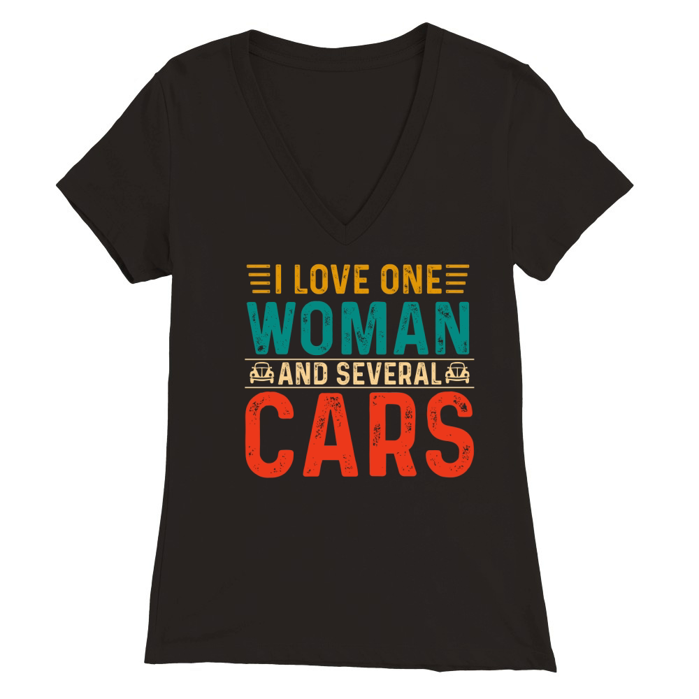 Shop I Love One Woman and Several Cars (1) Premium Womens V-Neck T-shirt custom made just for you. Available on many styles, sizes, and colors.