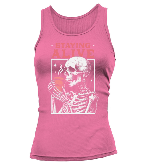 Shop Staying Alive Skeleton Coffee D Color Tank top Woman custom made just for you. Available on many styles, sizes, and colors.