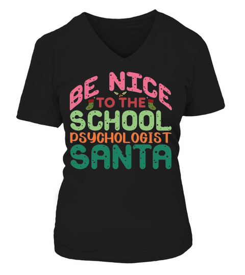 Shop Be Nice To The School Psychol Ogist Santa V-neck T-Shirt Woman custom made just for you. Available on many styles, sizes, and colors.