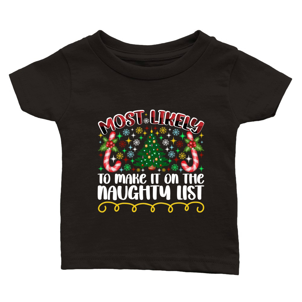Shop Most Likely To Make It On The Naughty List Classic Baby Crewneck T-shirt custom made just for you. Available on many styles, sizes, and colors.