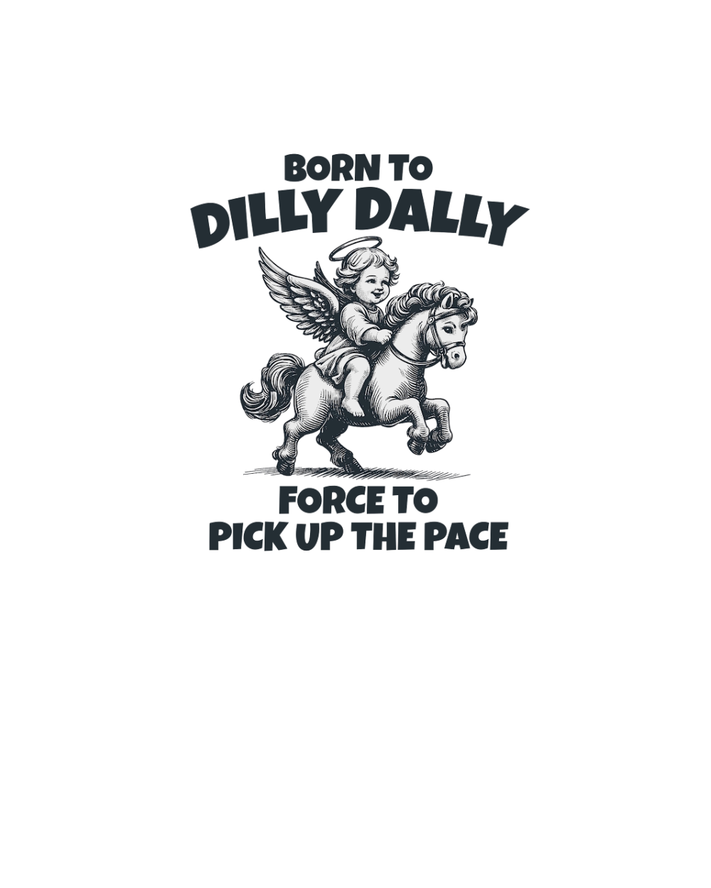 Shop Little Angel Riding A Pony BW Organic Unisex T-shirt custom made just for you. Available on many styles, sizes, and colors.