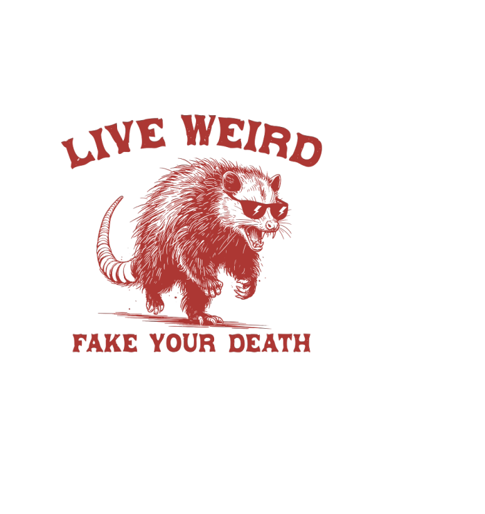 Live Weird Fake Your Death Possum L Red