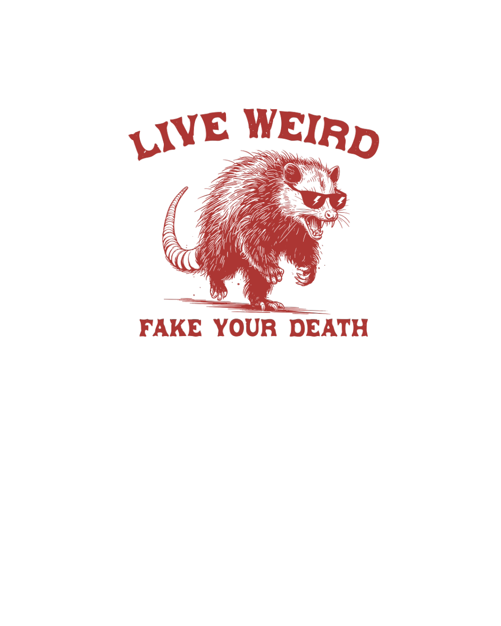 Live Weird Fake Your Death Possum L Red