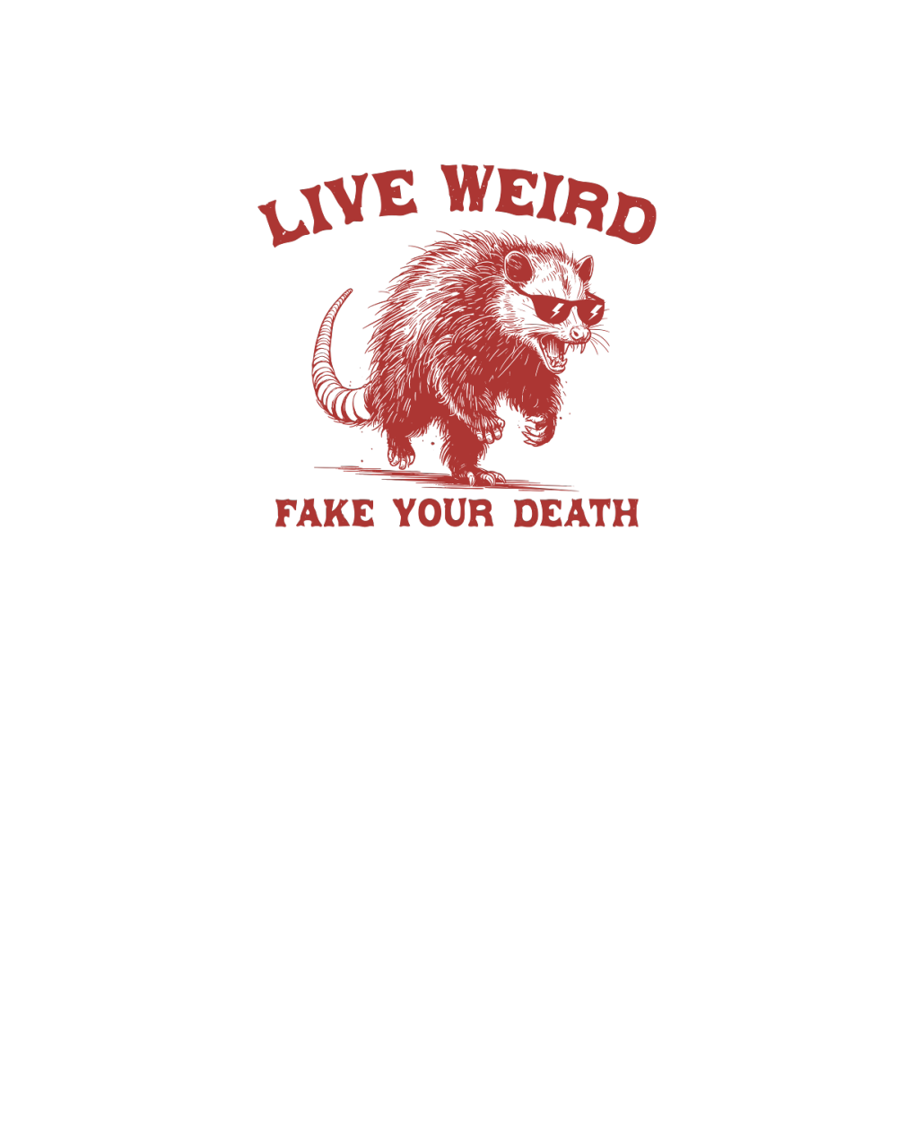 Live Weird Fake Your Death Possum L Red
