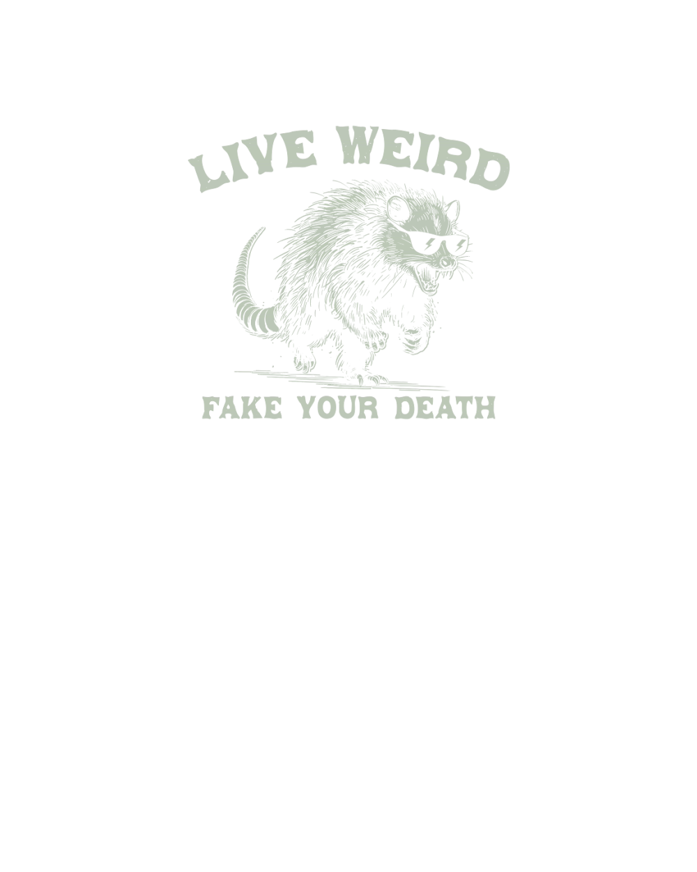Live Weird Fake Your Death Possum Retro Green