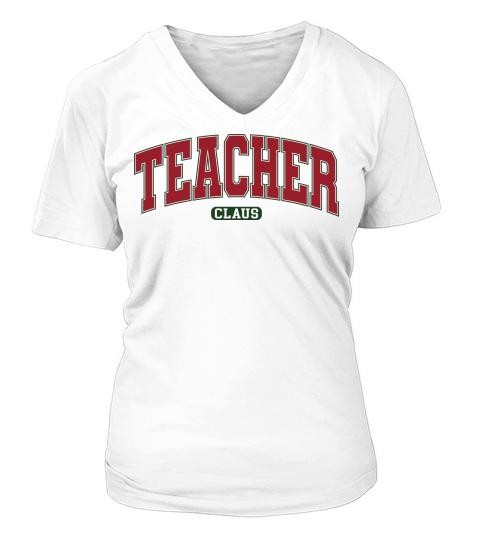 Shop TeacherClausVarsity V-neck T-Shirt Woman custom made just for you. Available on many styles, sizes, and colors.