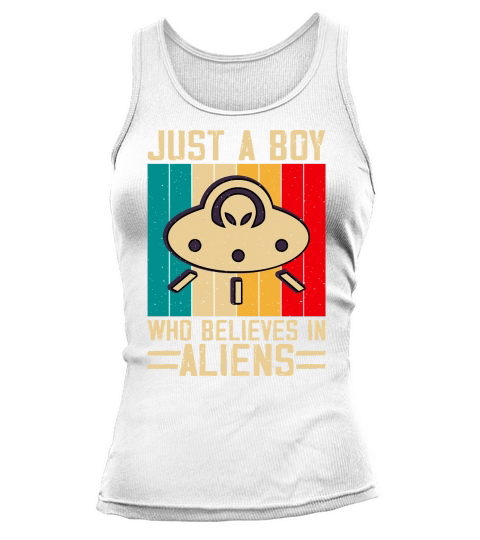 Shop Vintage UFO Alien Just A Boy Who Believes In Aliens 4 Tank top Woman custom made just for you. Available on many styles, sizes, and colors.