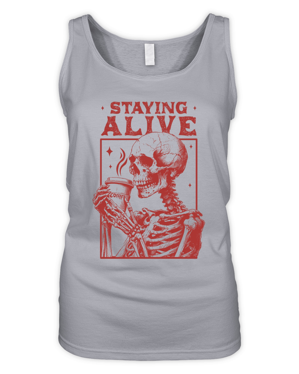 Shop Staying Alive Skeleton Coffee L Red Organic Women's Tank Top custom made just for you. Available on many styles, sizes, and colors.
