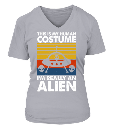 Shop Vintage UFO Alien This Is My Human Costume I am Really an Alien 6 V-neck T-Shirt Woman custom made just for you. Available on many styles, sizes, and colors.