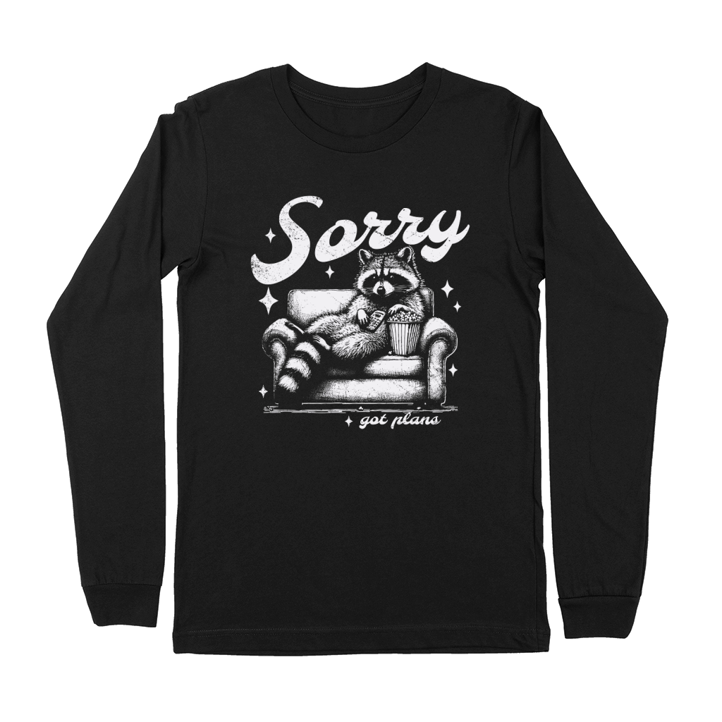 Shop Sorry Got Plans Raccoon Sofa Popcorn D White GR Premium Long Sleeve custom made just for you. Available on many styles, sizes, and colors.