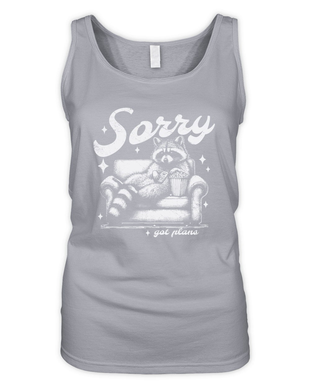 Shop Sorry Got Plans Raccoon Sofa Popcorn D White GR Organic Women's Tank Top custom made just for you. Available on many styles, sizes, and colors.
