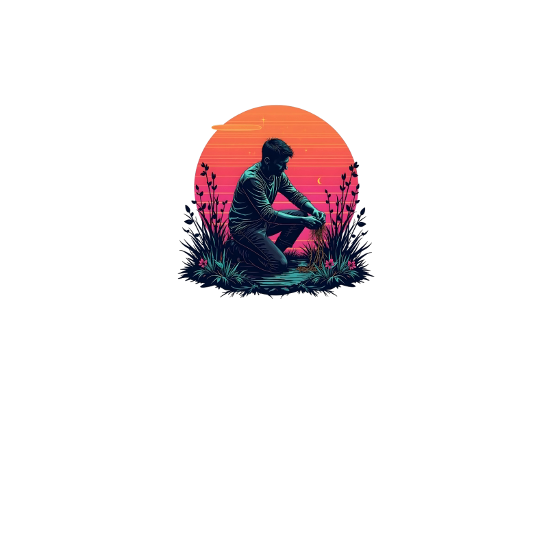 Man Harvesting Plants at Sunset