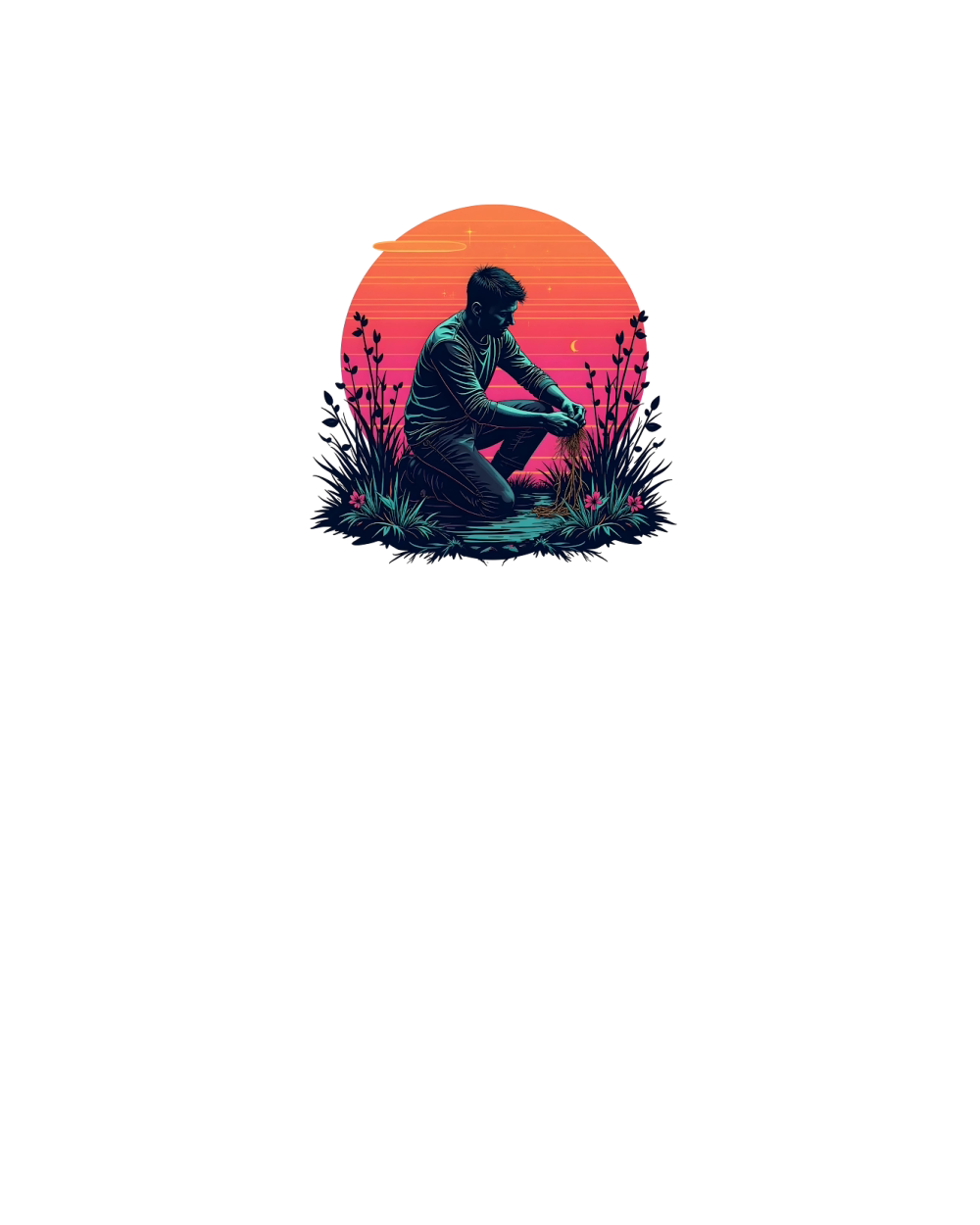 Man Harvesting Plants at Sunset