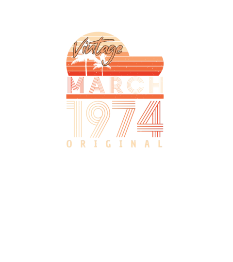 Shop March 1974 Retro Palm Trees V-Neck T-shirt custom made just for you. Available on many styles, sizes, and colors.