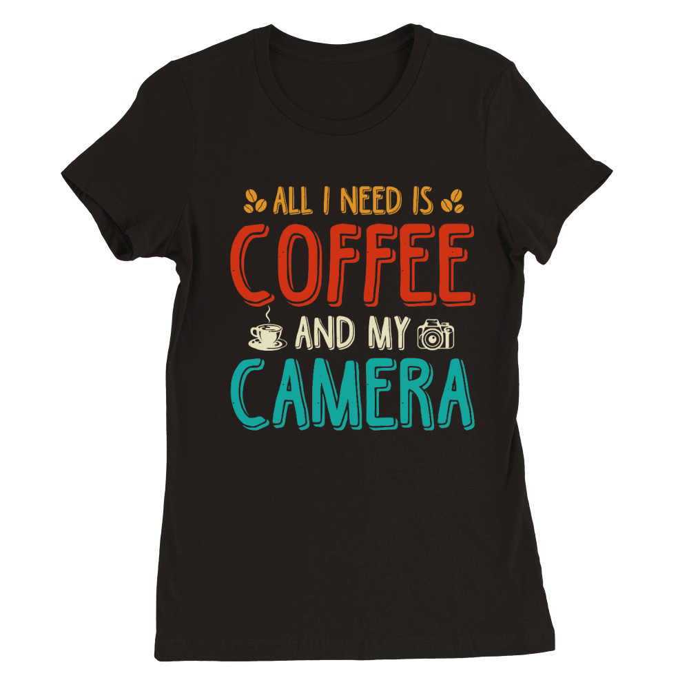 Shop All I Need Is Coffee And My Camera Premium Womens Crewneck T-shirt custom made just for you. Available on many styles, sizes, and colors.