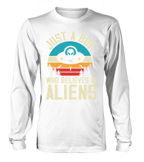 Shop Vintage UFO Alienjust a boy who believes in Aliens 2 Long sleeved Unisex custom made just for you. Available on many styles, sizes, and colors.