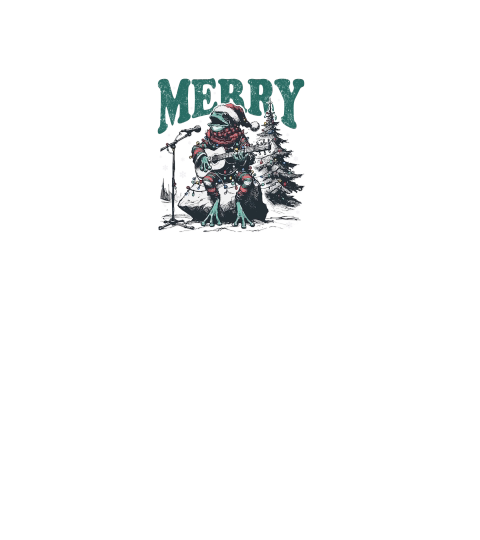 Merry Christmas Frog Playing Guitar D Black White Red Green 3