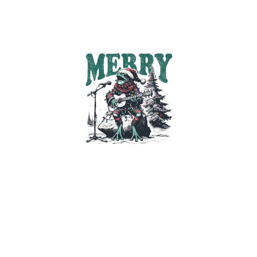 Merry Christmas Frog Playing Guitar D Black White Red Green 3