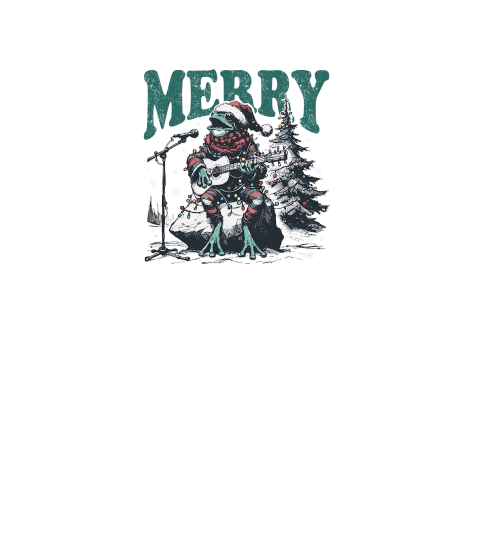Merry Christmas Frog Playing Guitar D Black White Red Green 3