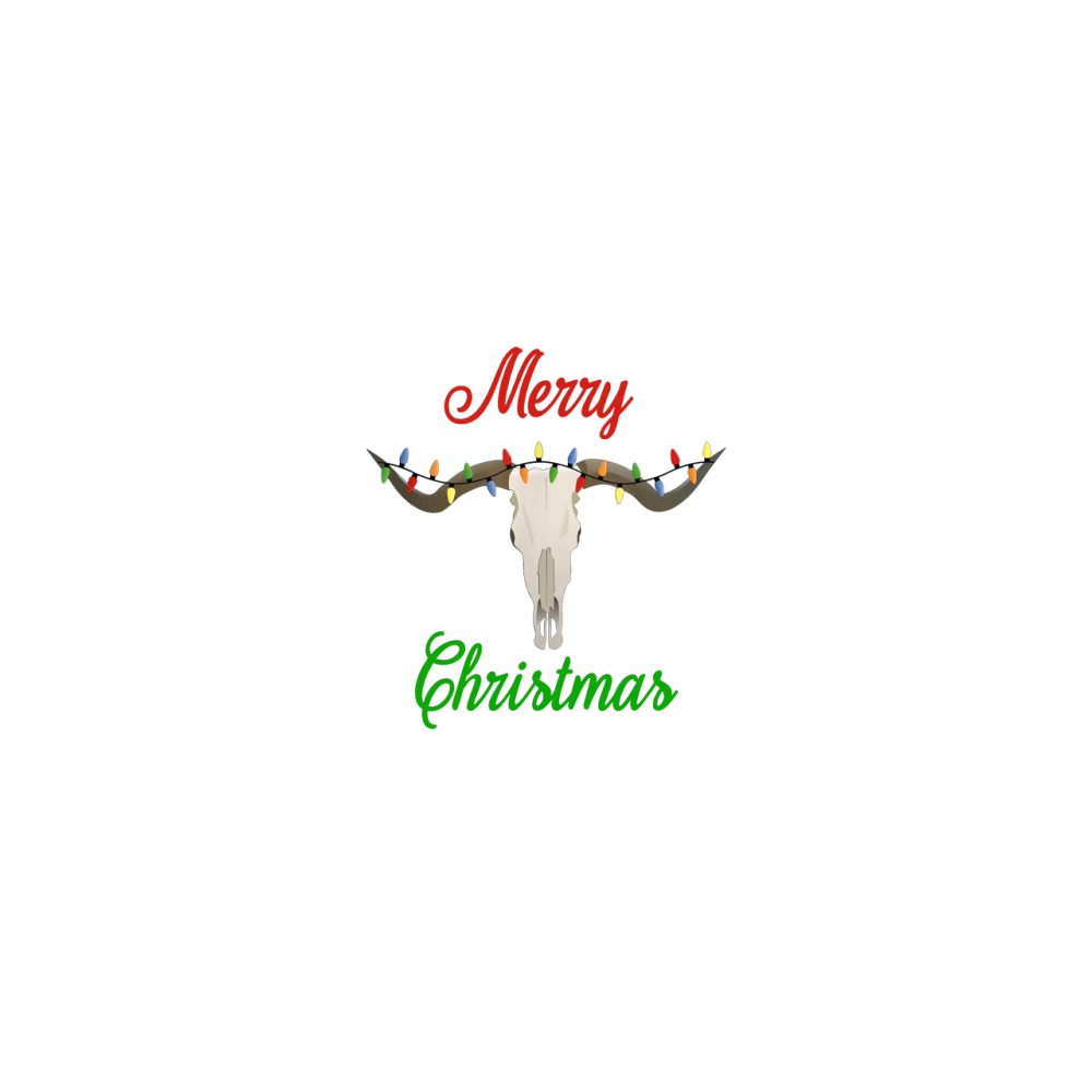 Merry Christmas Longhorn Texas Steer Skull
