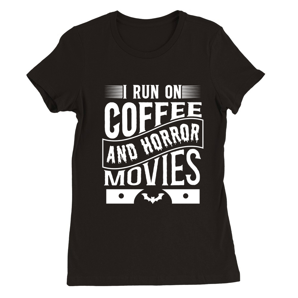 Shop I run on coffef and horror movies 05 Premium Womens Crewneck T-shirt custom made just for you. Available on many styles, sizes, and colors.