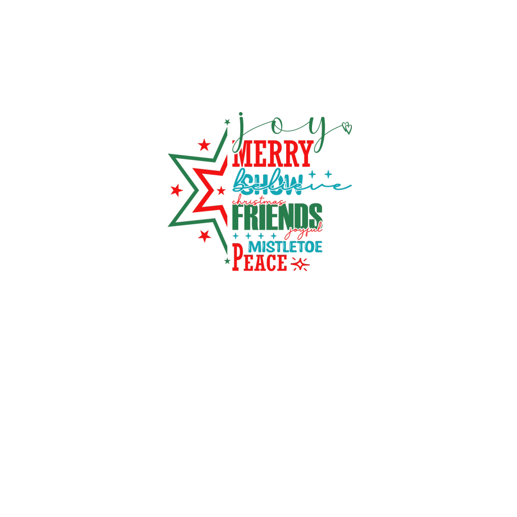 Shop Merry Joyful Believe Christmas Friends Joyful Mistletoe Peace Comfort T-shirt custom made just for you. Available on many styles, sizes, and colors.