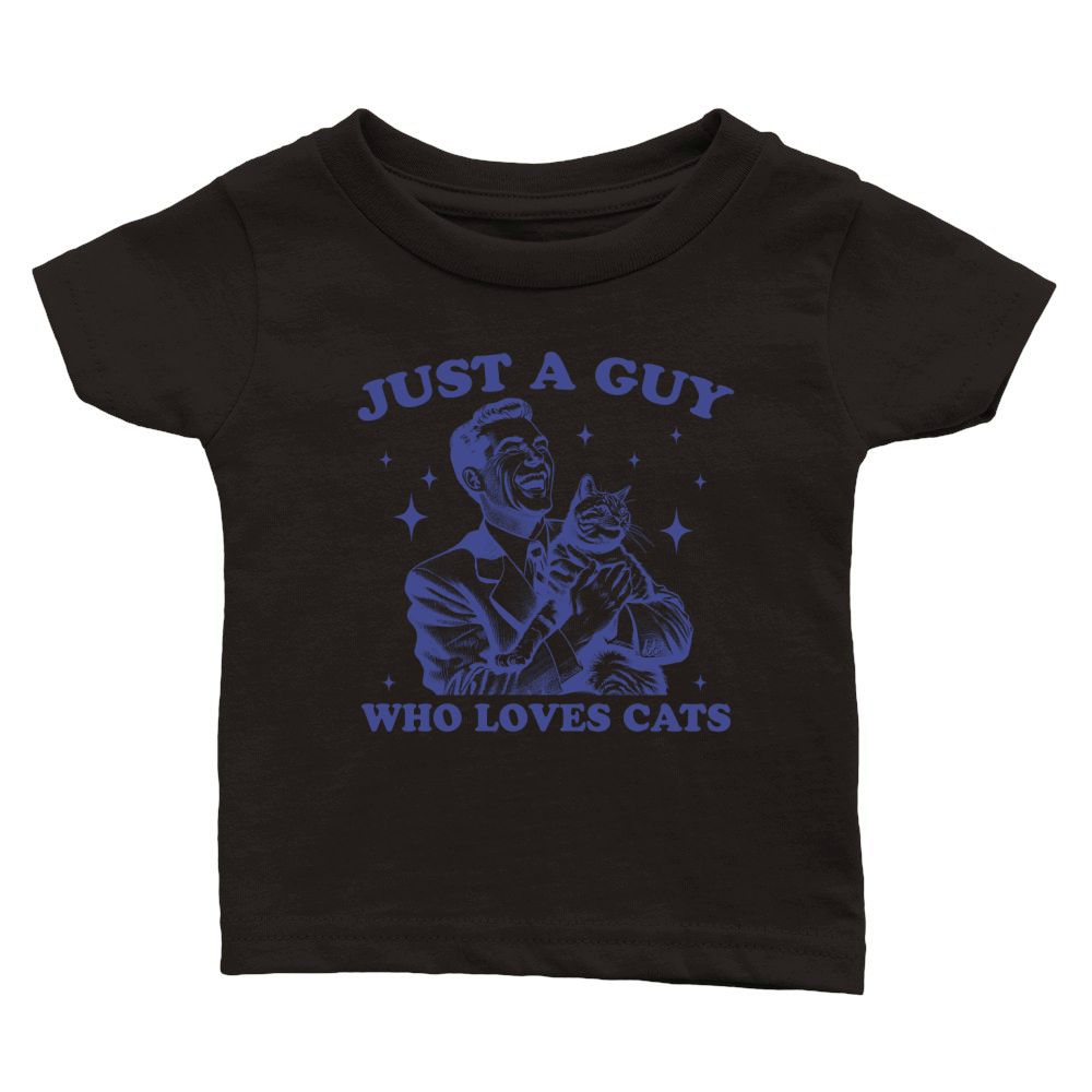 Shop Just A Guy Who Loves Cats L vBlue Classic Baby Crewneck T-shirt custom made just for you. Available on many styles, sizes, and colors.