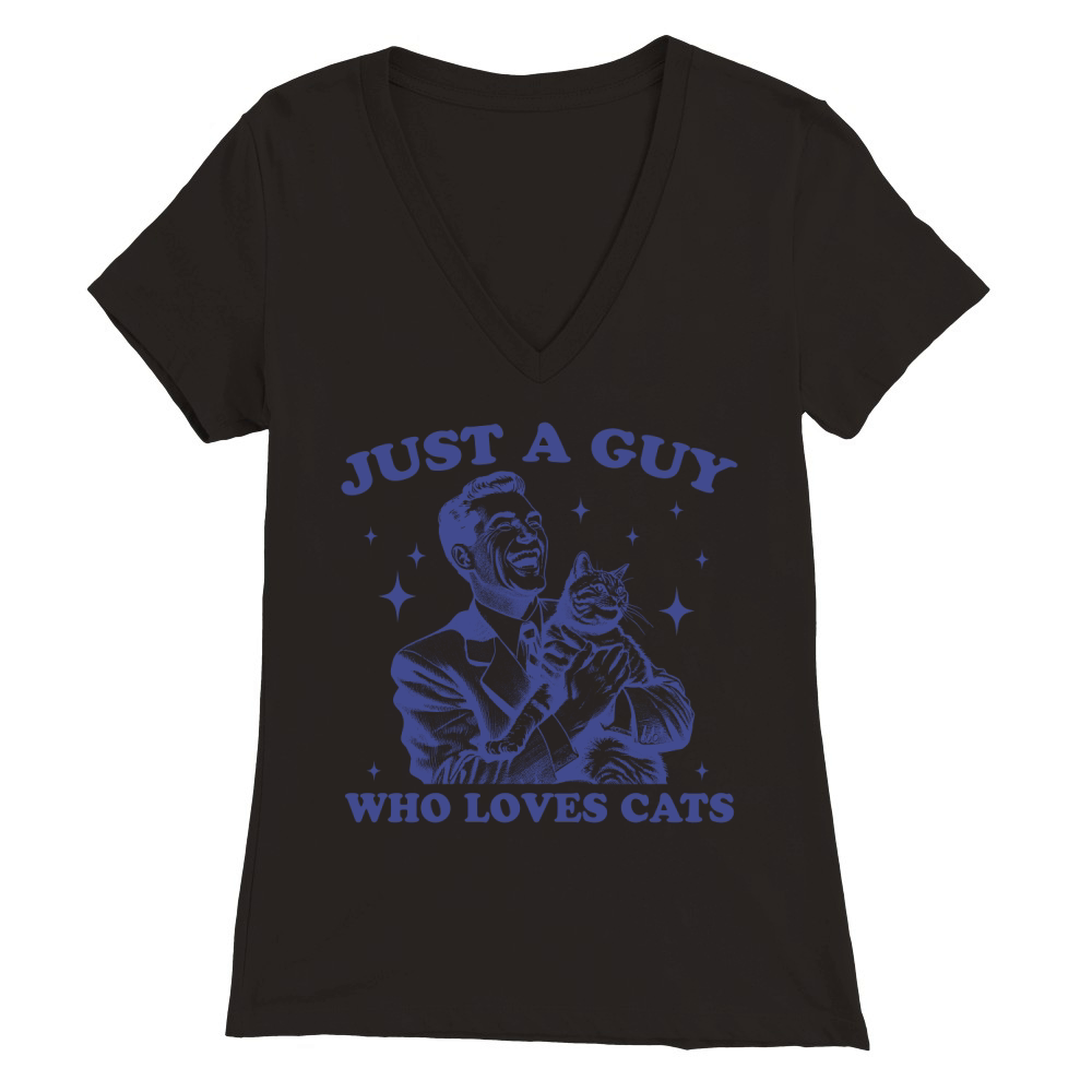 Shop Just A Guy Who Loves Cats L vBlue Premium Womens V-Neck T-shirt custom made just for you. Available on many styles, sizes, and colors.