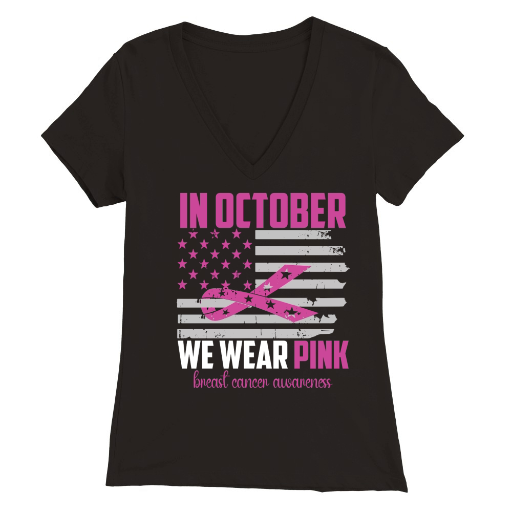 Shop In october we wear pink breast cancer awareness Premium Womens V-Neck T-shirt custom made just for you. Available on many styles, sizes, and colors.