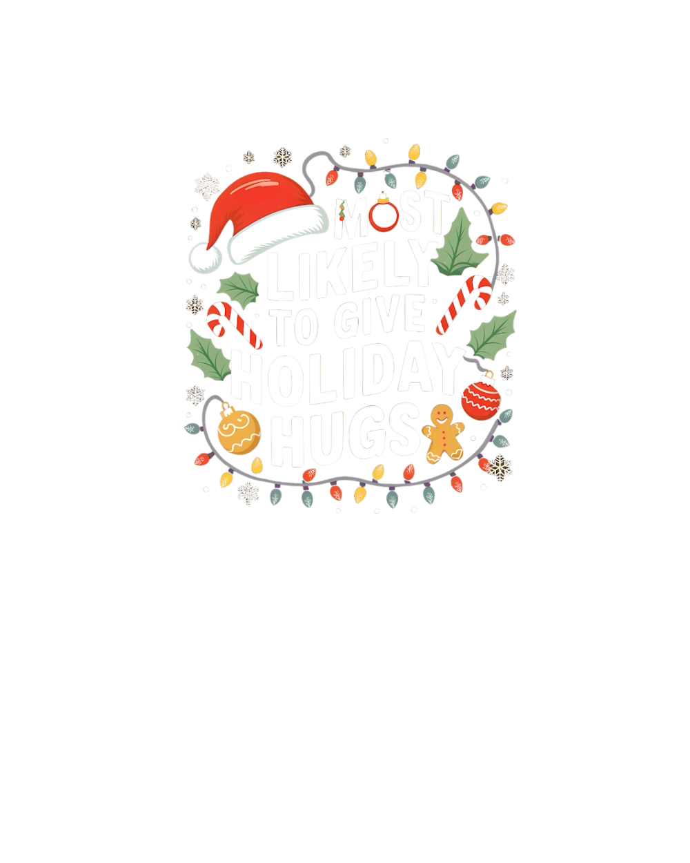 Shop Most likely to give holiday hugs Organic Unisex T-shirt custom made just for you. Available on many styles, sizes, and colors.