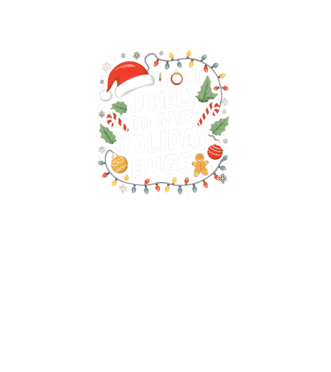Shop Most likely to give holiday hugs V-Neck T-shirt custom made just for you. Available on many styles, sizes, and colors.