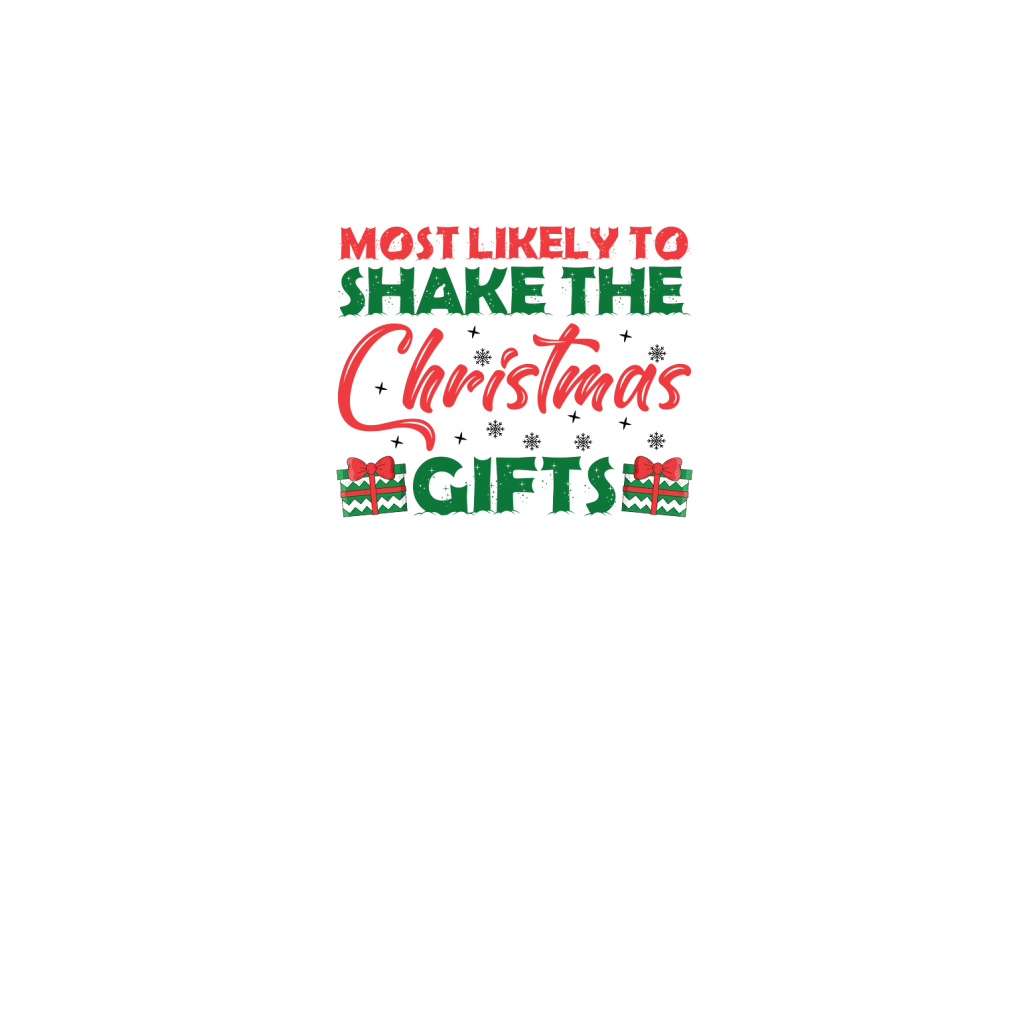 Shop Most Likely to Shake The Christmas Gifts Comfort T-shirt custom made just for you. Available on many styles, sizes, and colors.