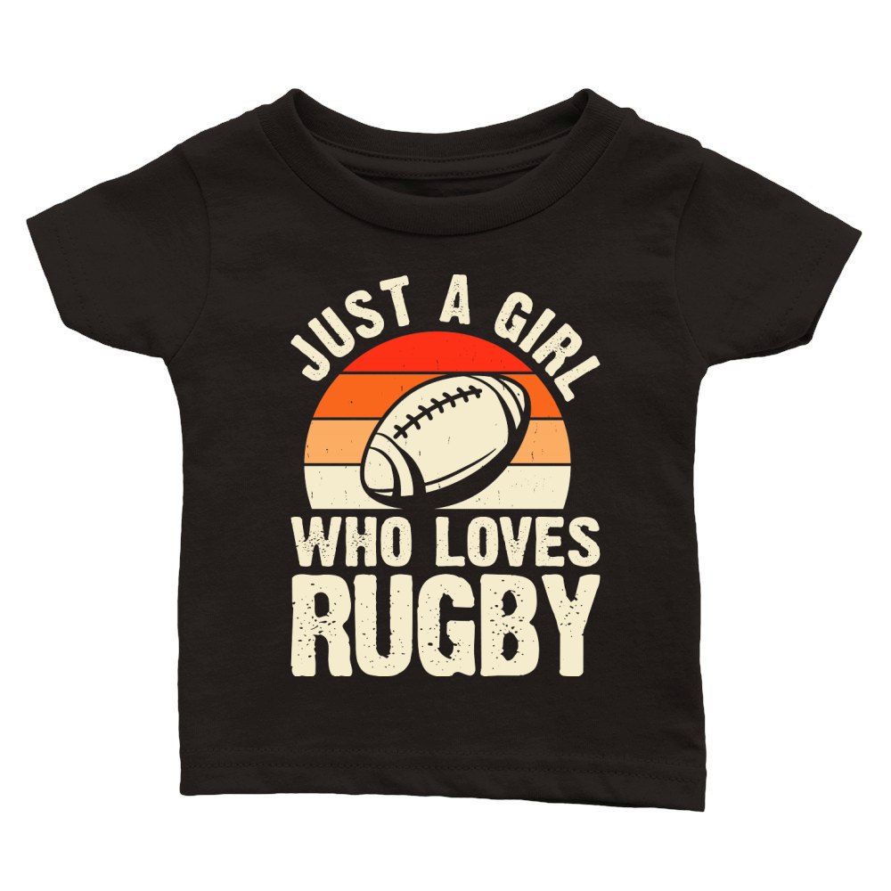 Shop Vintage Rugby Player just a girl who loves rugby Classic Baby Crewneck T-shirt custom made just for you. Available on many styles, sizes, and colors.