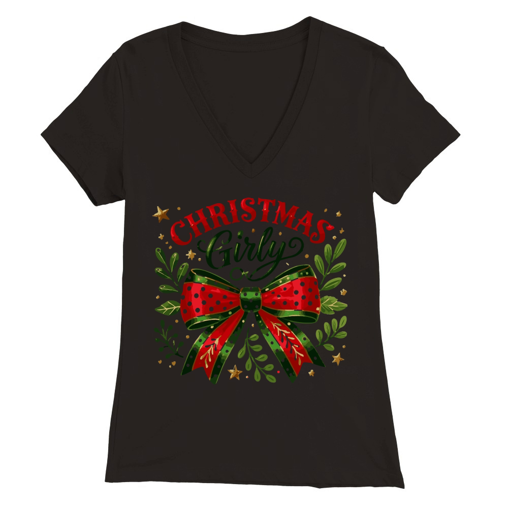 Shop Christmas Girly Premium Womens V-Neck T-shirt custom made just for you. Available on many styles, sizes, and colors.
