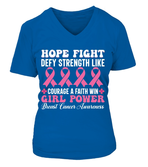 Shop Hope fight defy strength like courage a faith win girl power breast cancer awareness V-neck T-Shirt Woman custom made just for you. Available on many styles, sizes, and colors.