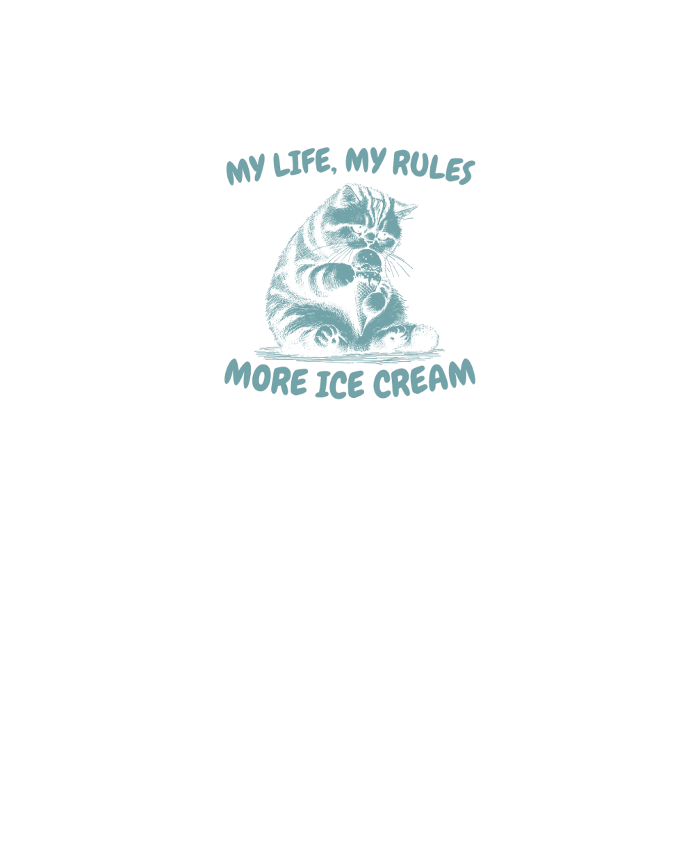 My Life My Rules Cat Eat Ice Cream D Retro Green