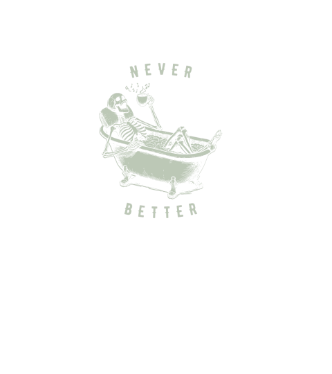 Shop Never Better Skeleton In Bathtub D Retro Green Long sleeved Unisex custom made just for you. Available on many styles, sizes, and colors.