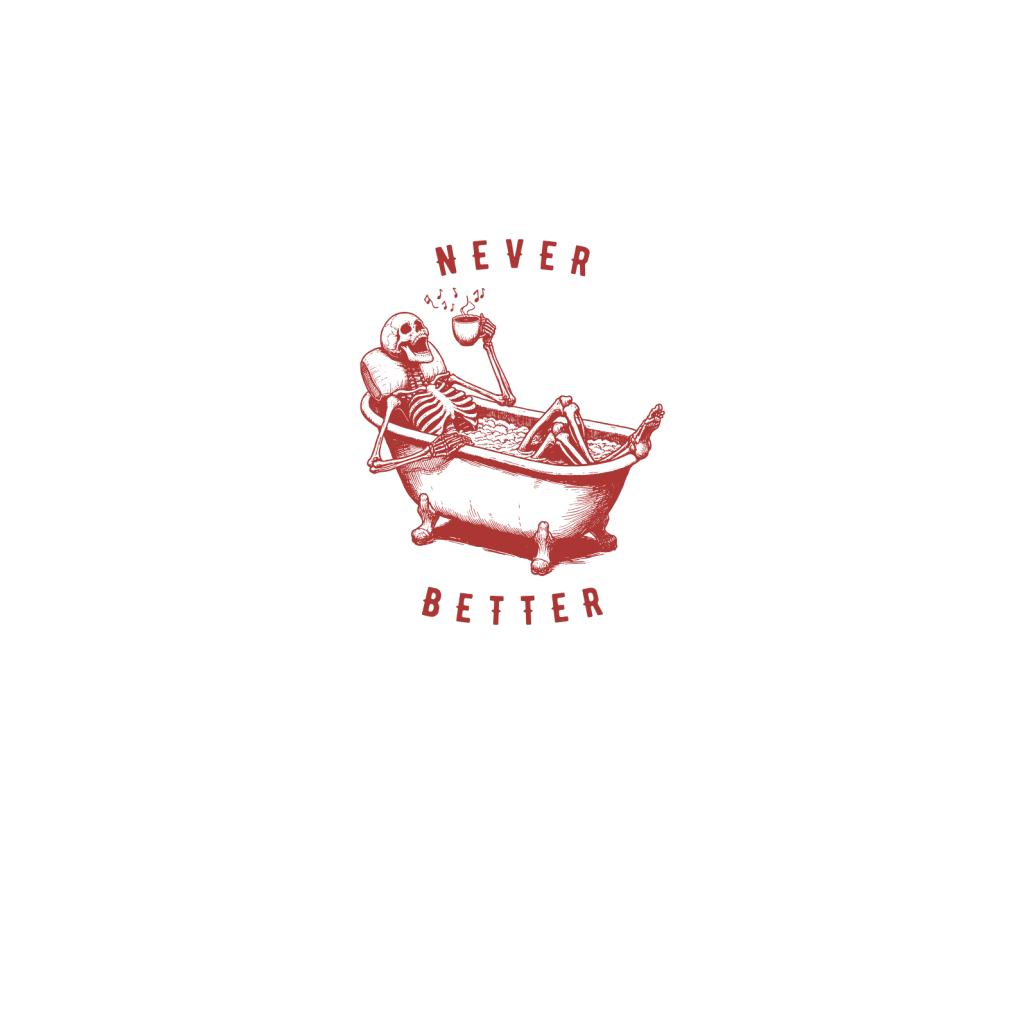 Never Better Skeleton In Bathtub L Red