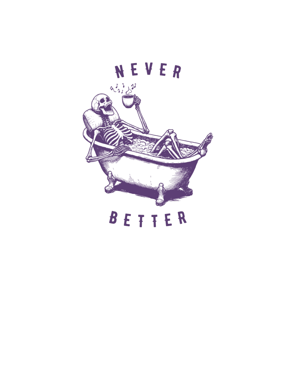 Shop Never Better Skeleton In Bathtub L Violet Organic Unisex T-shirt custom made just for you. Available on many styles, sizes, and colors.