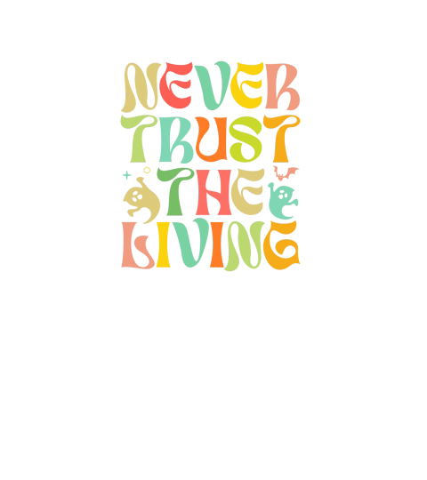 Shop Never trust the living Halloween V-Neck T-shirt custom made just for you. Available on many styles, sizes, and colors.