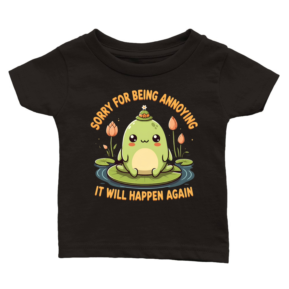 Shop Sorry For Being Annoying It Will Happen Again Classic Baby Crewneck T-shirt custom made just for you. Available on many styles, sizes, and colors.