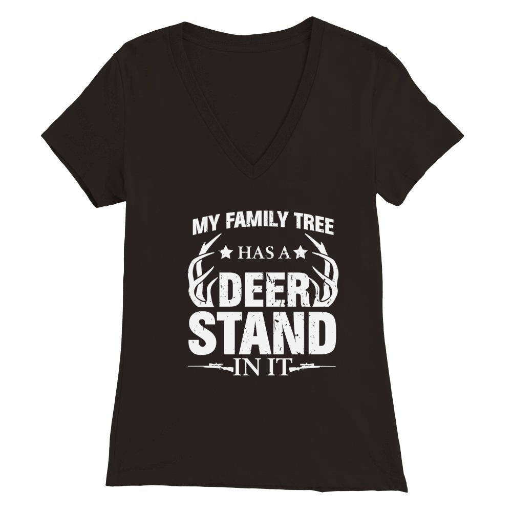 Shop My Family Tree Has A Deer Stand In It Funny Premium Womens V-Neck T-shirt custom made just for you. Available on many styles, sizes, and colors.